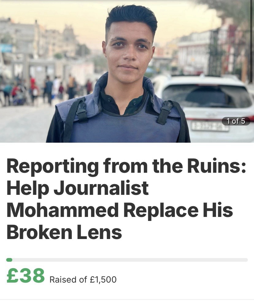 https://chuffed.org/project/176053-reporting-from-the-ruins-help-journalist-mohammed-replace-his-broken-lens